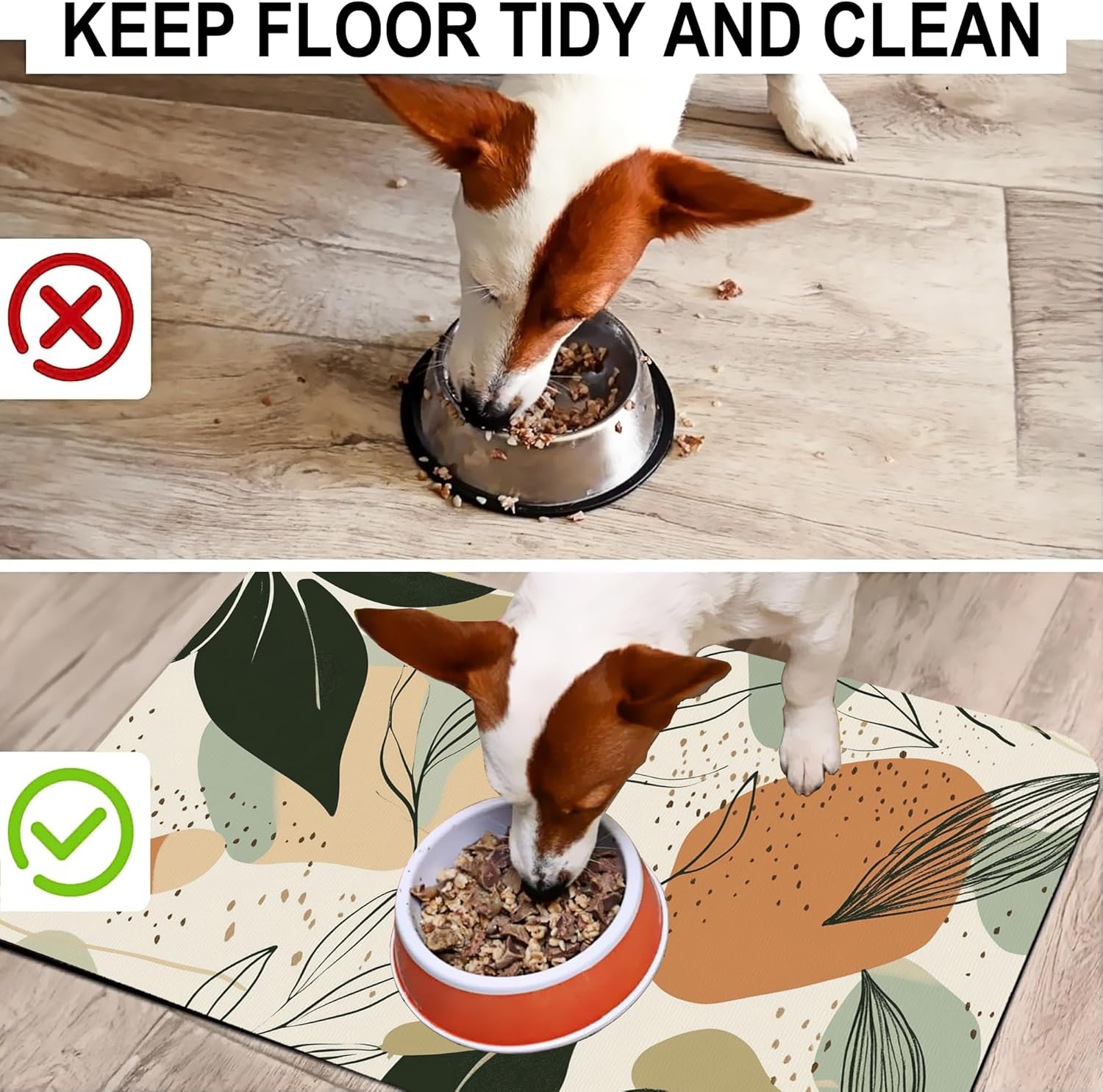Abstract Boho Leaves Dog Food Mat-Absorbent Pet Feeding Mat for Food and Water Bowl, Quick Dry Dog Placemat with Rubber Backing-No Stains Pet Supplies for Messy Drinkers 16"x24"