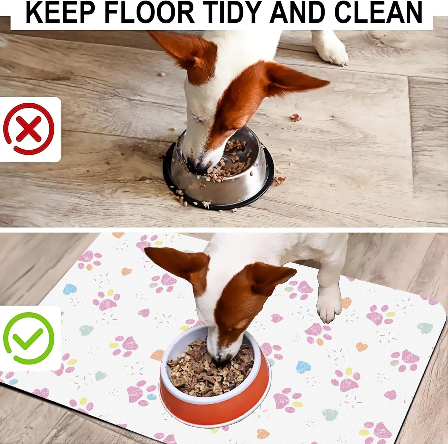 Pink Dog Paw Pet Feeding Mat for Floors-Absorbent Dog Bowl Mat for Food and Water, Quick Dry Pet Cat Feeding Mats with Non Slip Bottom, Mess-Free Dog Accessories 16"x24"