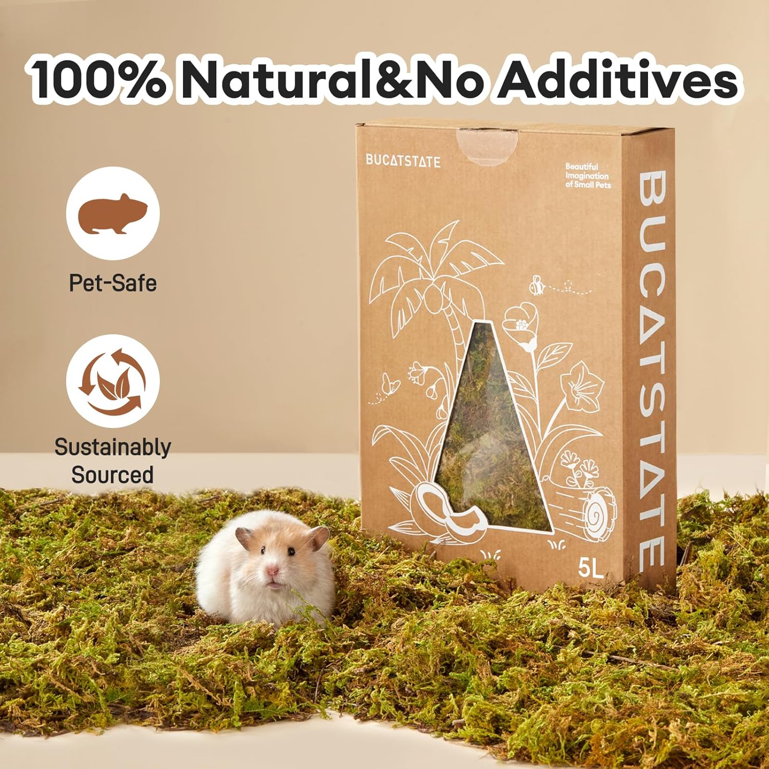 BUCATSTATE 5L Hamster Bedding, Natural Forest Moss Hamster Bedding Odor Control, Nature Hamsters Substrate Cage Accessories for Dwarf Syrian Hamsters, Mice, Gerbils (Dried Moss)
