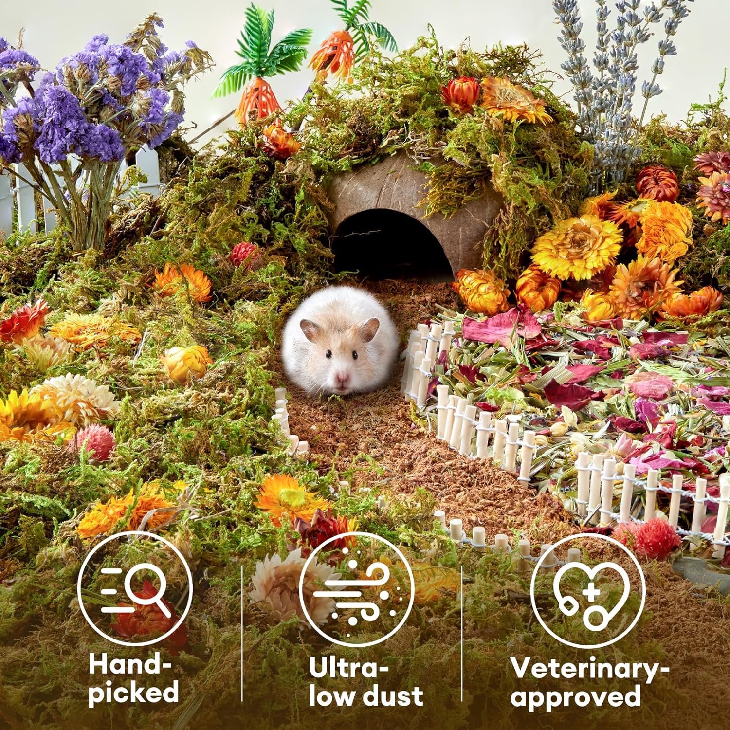 - Premium All-Natural Hand-Picked hamster moss : Naturally sourced, dye-free, low dust & low impurities. UV sterilized for safety. Meets pet safety standards.