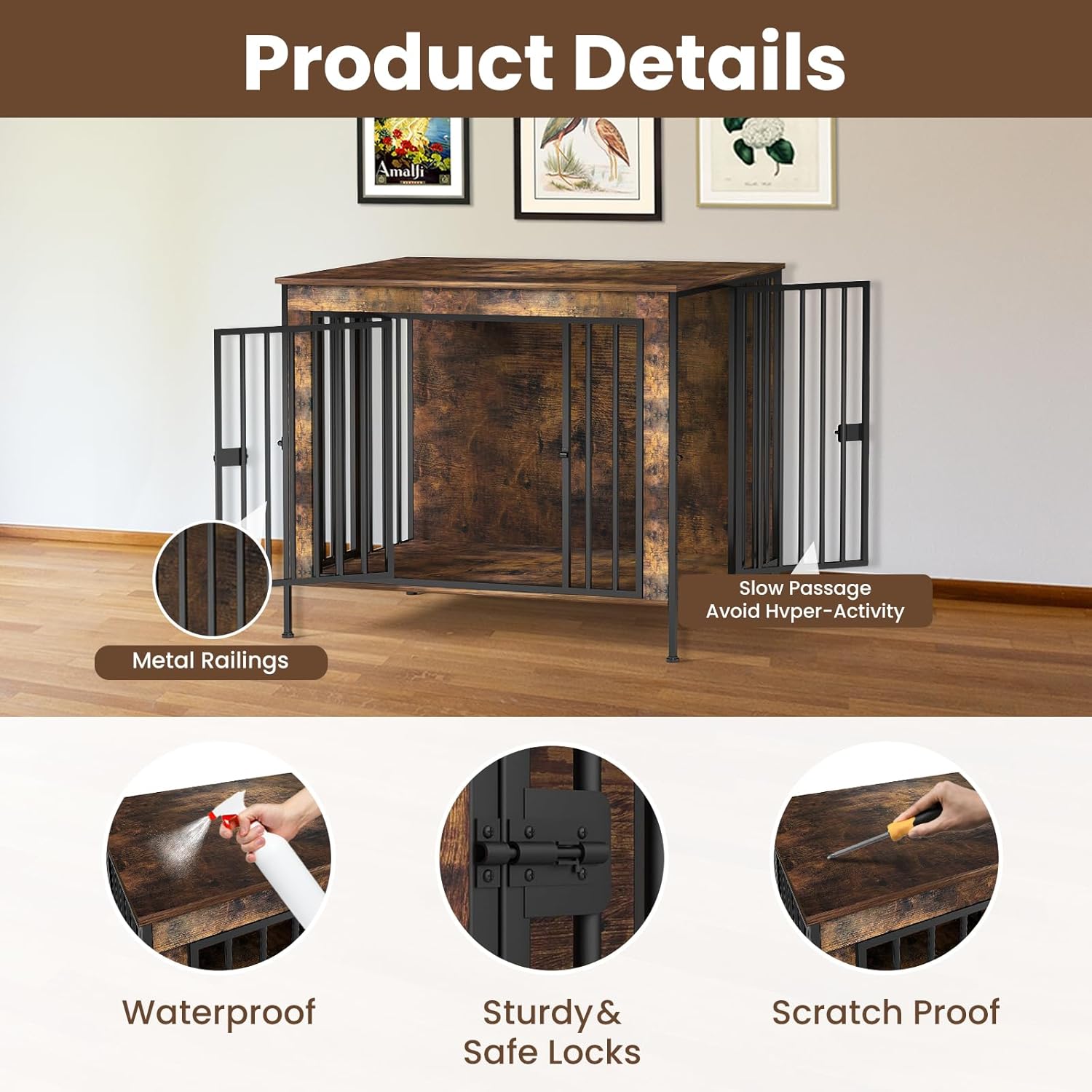 - Furniture-Style Dog Crate Table: The long rustic wood top turns the unit into a 78-inch console or TV stand that holds lamps, plants, books and more. It blends with modern, farmhouse or industrial décor, saving floor space by combining storage and a stylish dog cage furniture piece.