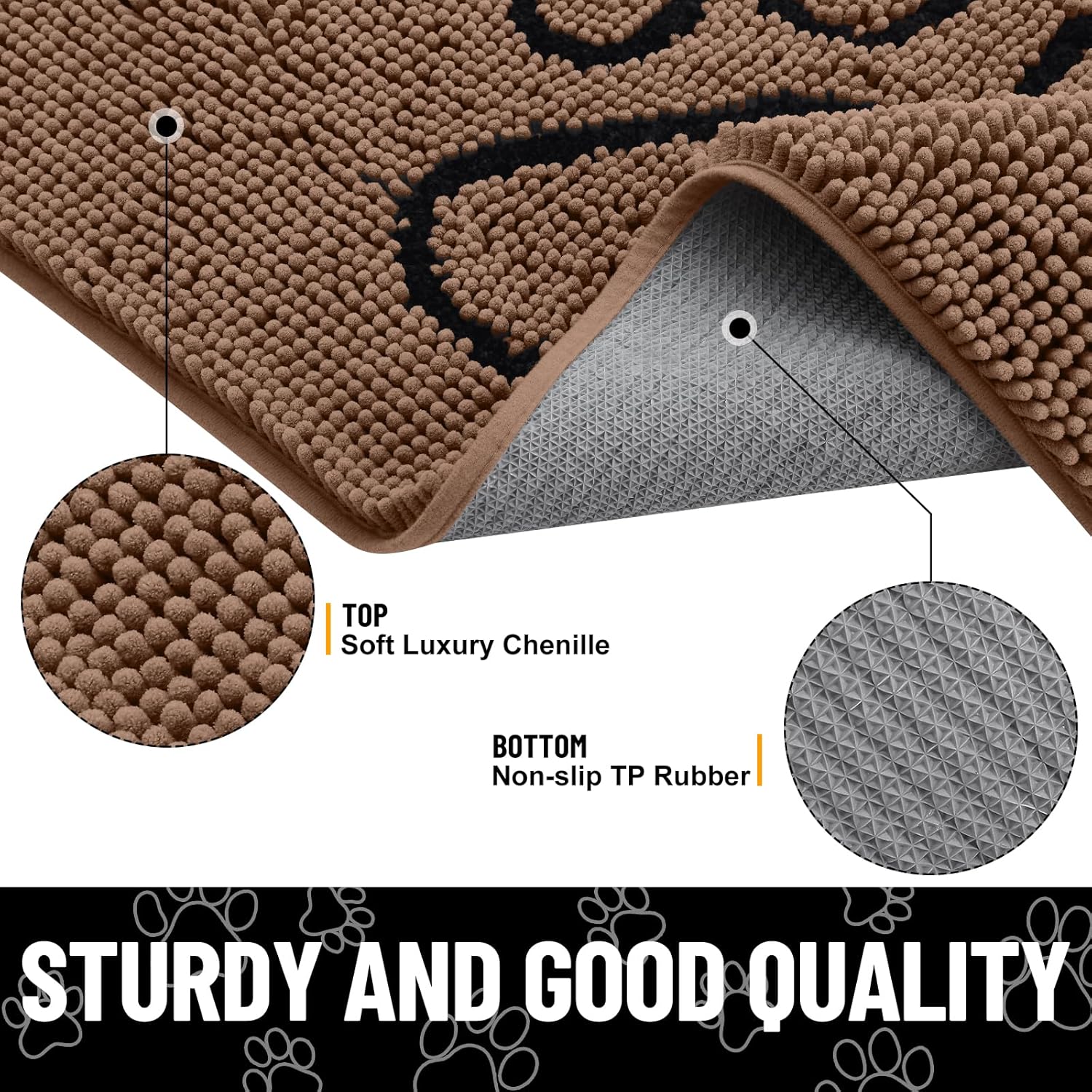 Smiry Dog Door Mat for Muddy Paws, Absorbent Dirt Trapper Non Slip Quick Dry Washable Chenille Mat for Mud Dogs, Entry Rug for Indoor and Outdoor (48x30 Inches, Coffee)