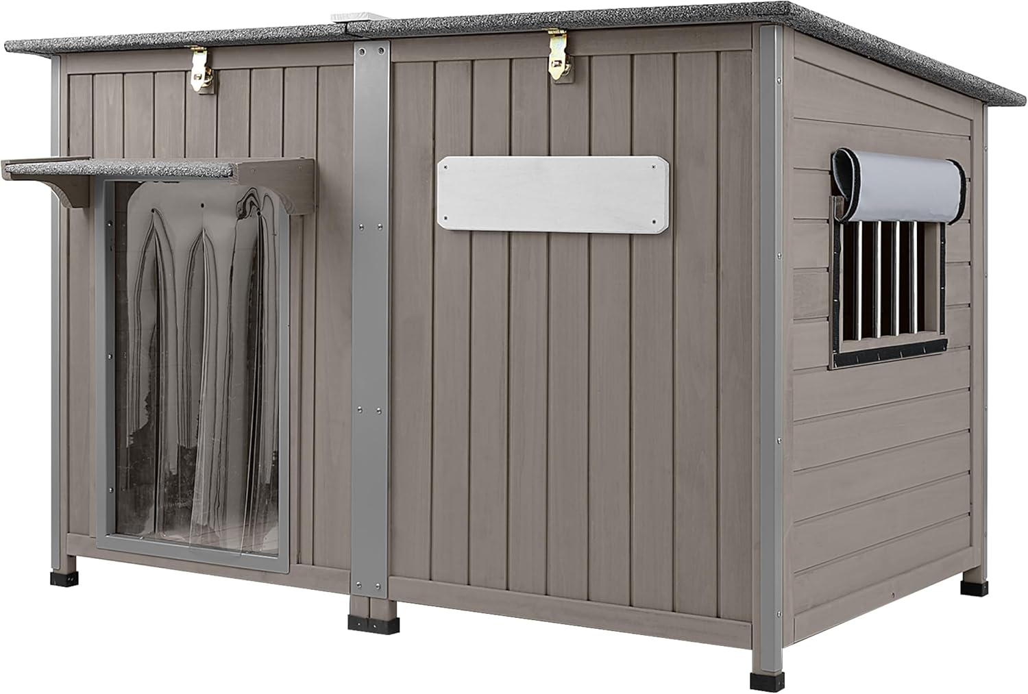 - ✅【4.Year-Round Comfort,Indoor or Outdoor Dog House with Window】Adapt to all seasons waterproof construction and dual-opening weatherproof roof dog house,keeps pets warm in the winter and cool in the summer,the raised base and window design maintain interior dryness and air freshness.Perfect for year round—whether in the backyard, porch, patio, or even indoors.