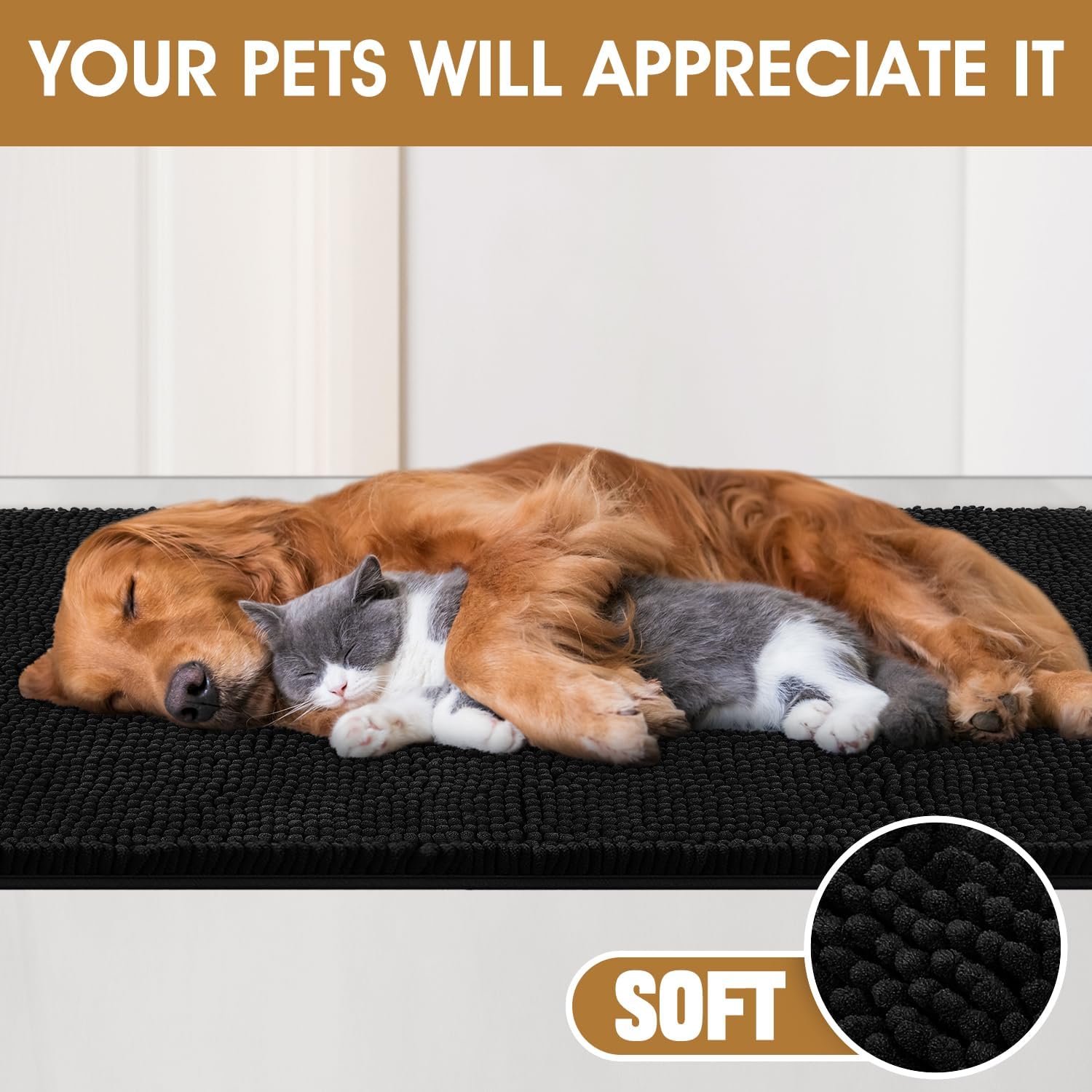 IM HOME Dog Door Mats for Muddy Paws, Chenille Absorbent Door Mats, Non Slip Heavy Mud Mat for Dogs, Soft Indoor Door Mat for Entryway, Mud Paws, Inside Floor,30" X 20", Black