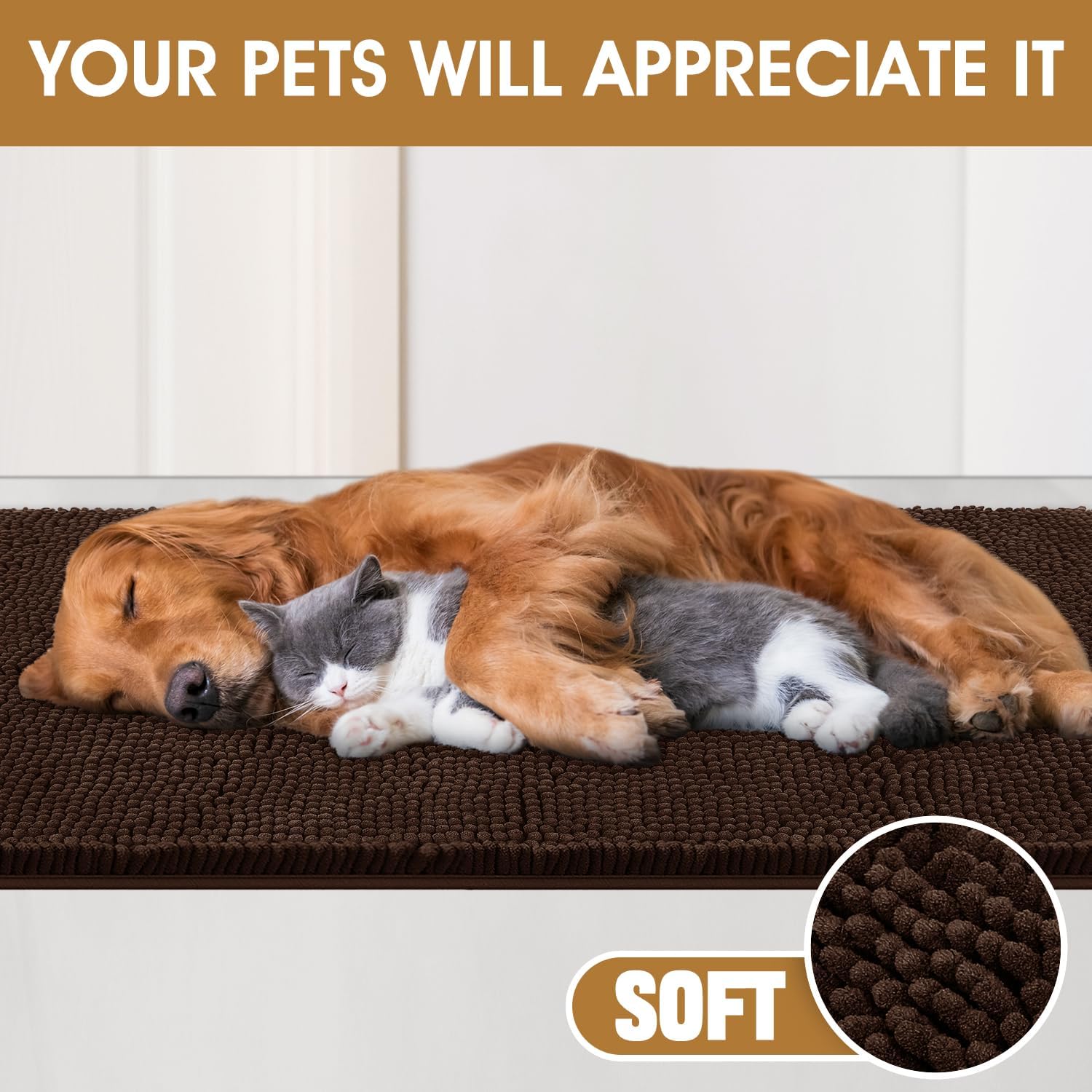 Dog Door Mats for Muddy Paws, Chenille Absorbent Door Mats, Non Slip Heavy Mud Mat for Dogs, Soft Indoor Door Mat for Entryway, Mud Paws, Inside Floor,36" X 24", Brown