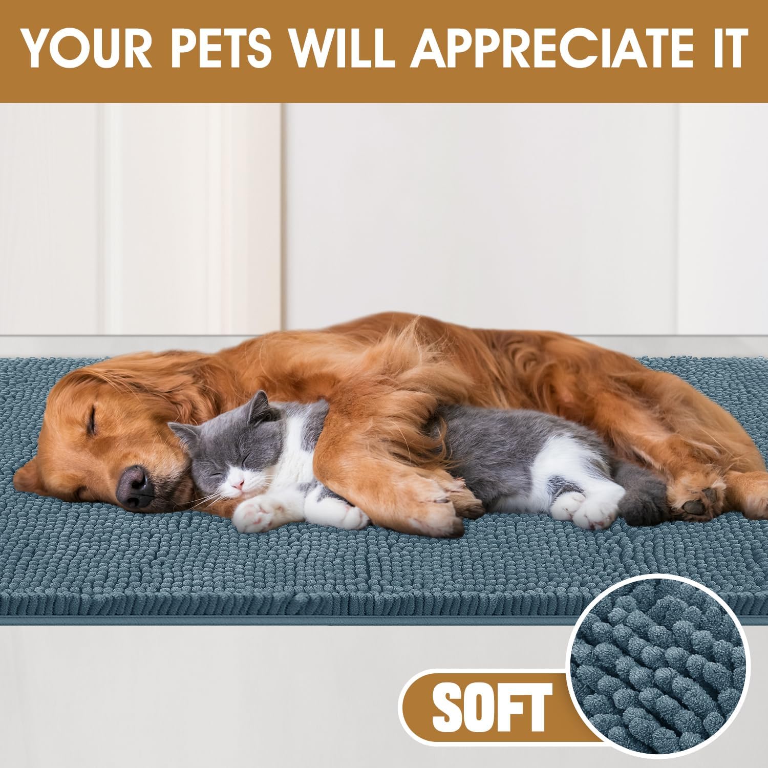 Dog Door Mats for Muddy Paws, Chenille Absorbent Dog Mats, Non Slip Heavy Mud Mat for Dogs, Soft Pet Mat for Entryway, Mud Paws, Inside Floor,48" x 38", Dusty Blue