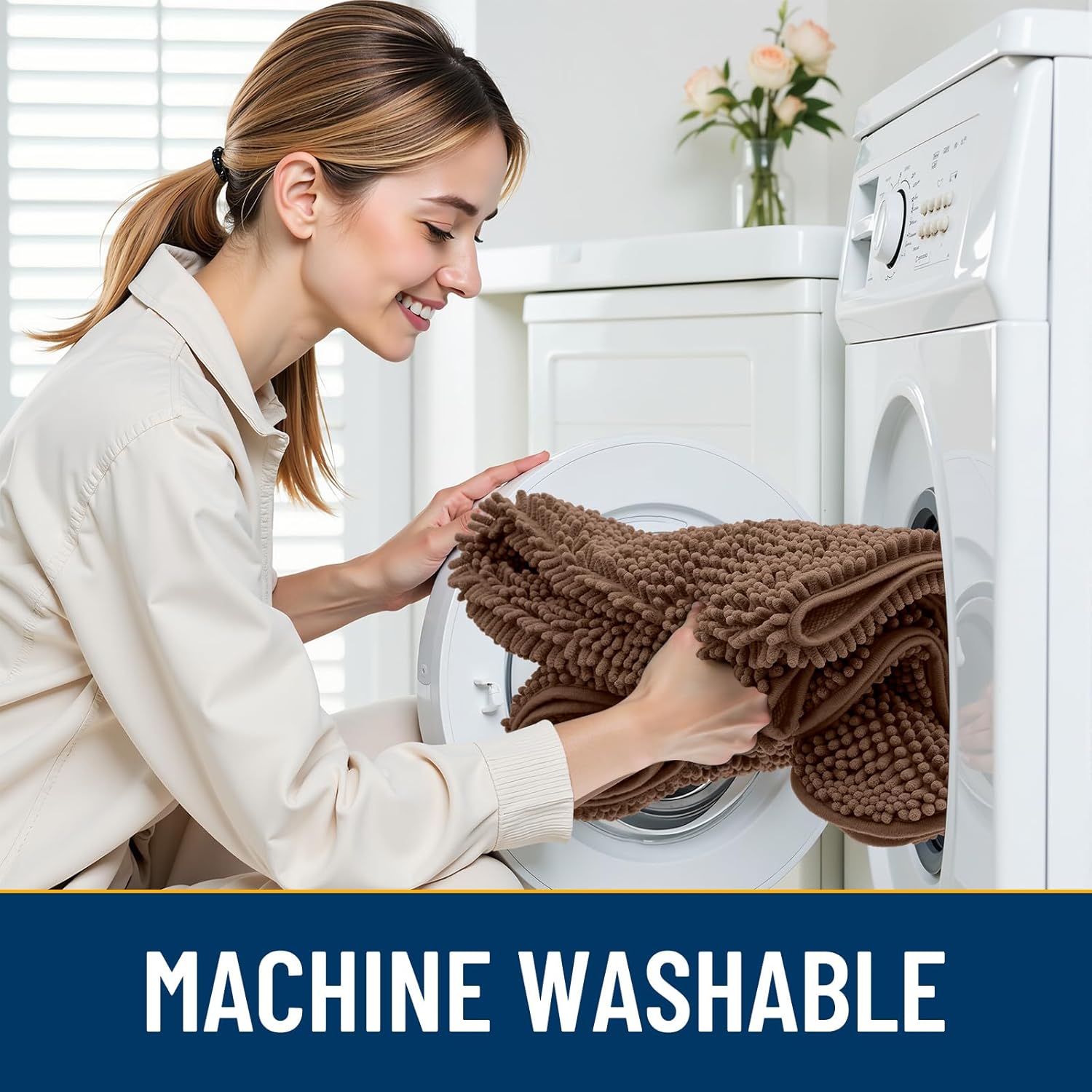 Smiry Dog Door Mat for Muddy Paws 24x16, Absorbs Moisture and Dirt Doormat, Non-Slip Washable Quick Dry Chenille Front Door Mat Indoor Entrance, Entryway Carpet for Inside Floor, Mocha