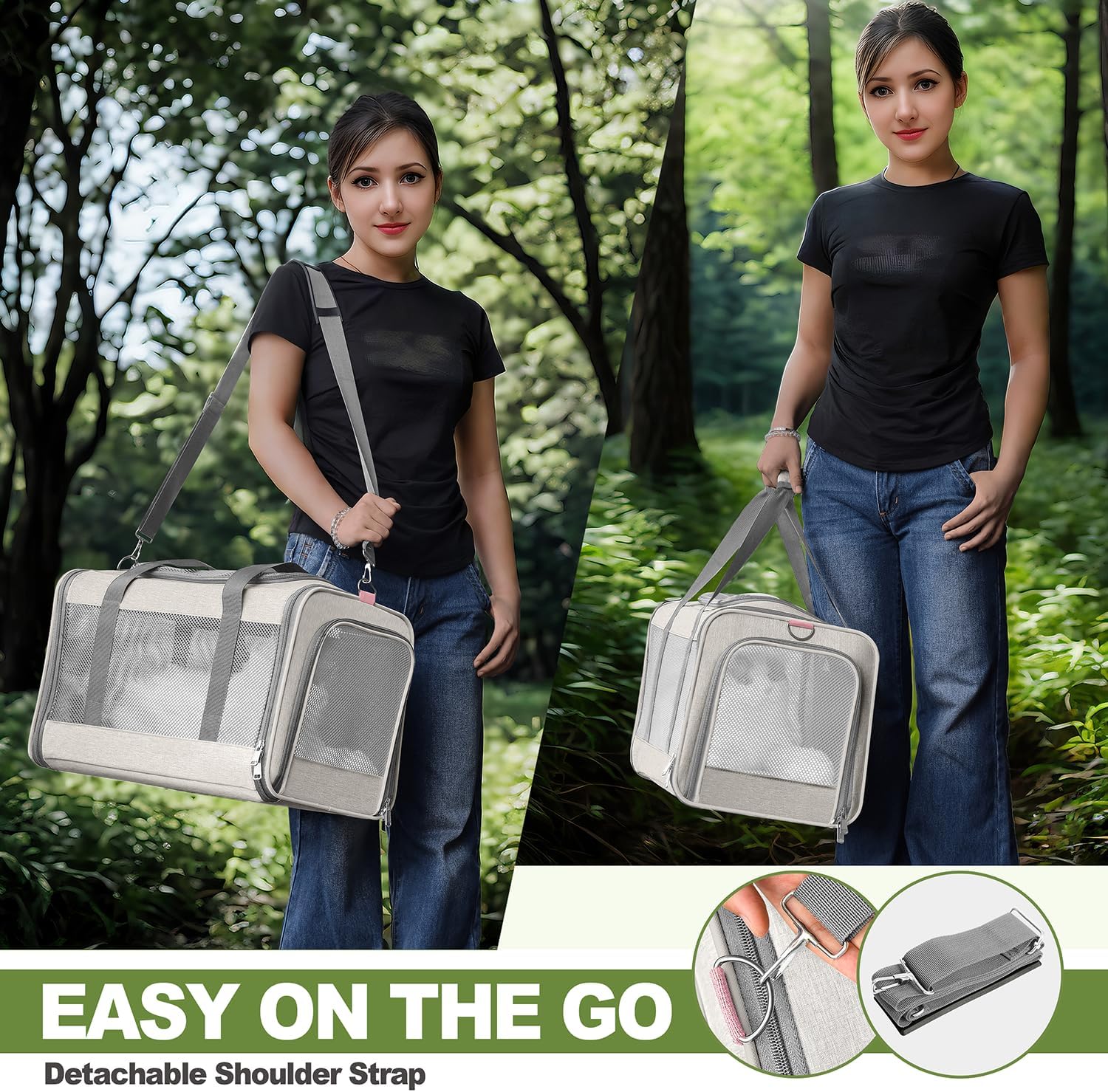 - Stress-Free Travel Ready Bag - Adjustable, detachable shoulder strap allows for hands-free carrying for doggies during airports trips or vet visits. Collapsible case can be stored flat for convenient storage
