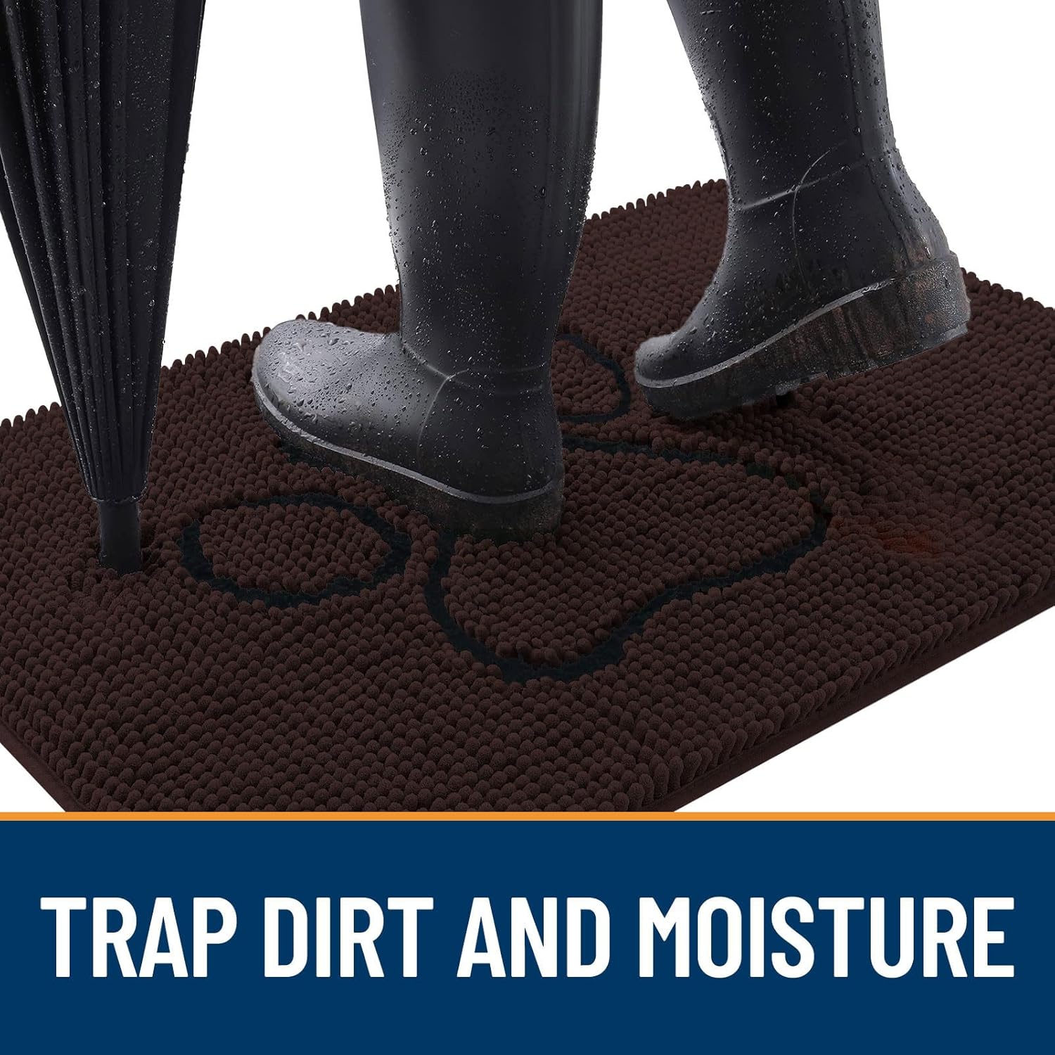 - [ABSORBS MOISTURE AND DIRT] OLANLY indoor dog mat for muddy paws is crafted to efficiently remove dirt and swiftly absorb moisture. With our doormat, your shoes will be instantly clear of any water, dust, grit, muck, sand, sleet, grass, slush, rain, or snow upon entering the house. It's an excellent choice for use as an entryway door mat, a welcoming door mat, or a dirt-trapping mat.