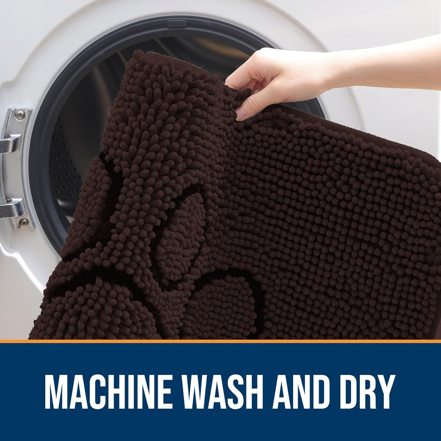 OLANLY Door Mat for Muddy Dog Paws 36x24, Absorbent Chenille Mud Doormat with Paw Print Design, Non-Slip Washable Doormat for Indoor Entryway, Quick-Dry Pet Bed Mats for Dirty Dogs, Brown and Black
