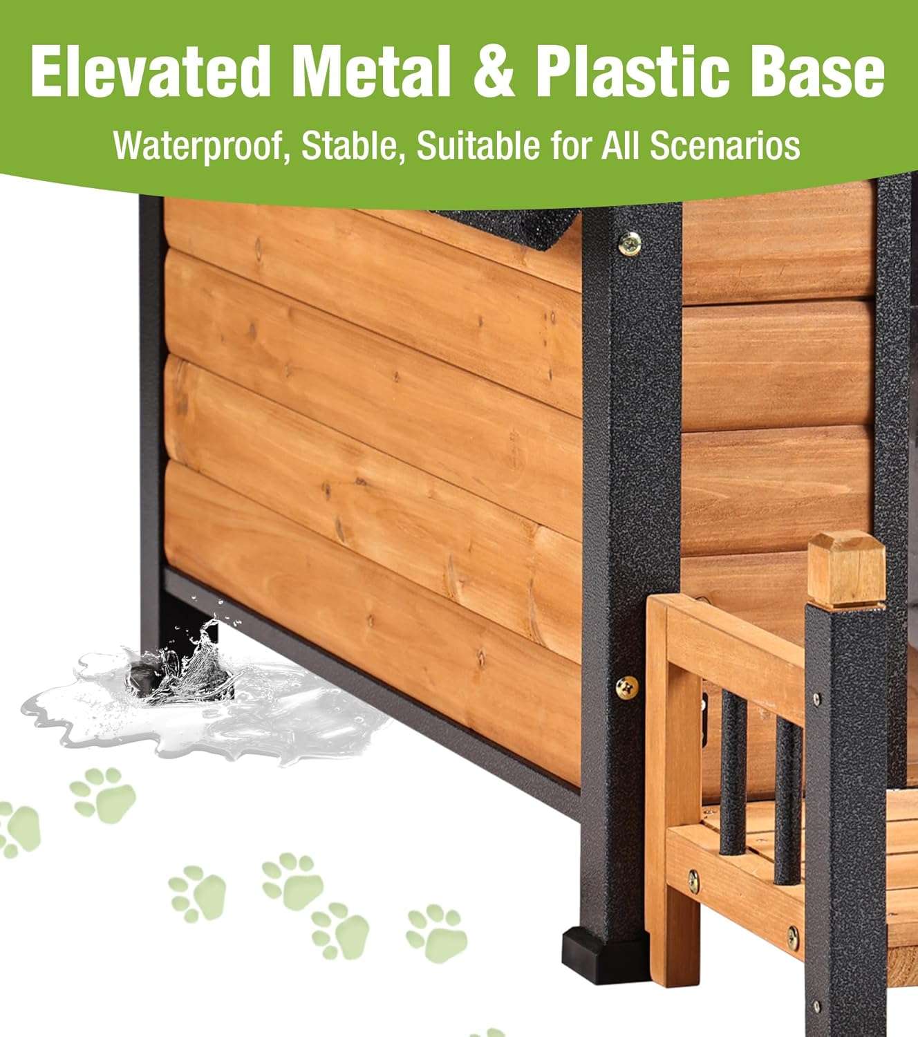 - 𝐄𝐋𝐄𝐕𝐀𝐓𝐄𝐃 𝐁𝐀𝐒𝐄 𝐅𝐎𝐑 𝐖𝐀𝐓𝐄𝐑𝐏𝐑𝐎𝐎𝐅 𝐒𝐓𝐀𝐁𝐈𝐋𝐈𝐓𝐘 - Combining metal and plastic, the elevated base of this dog house blocks ground moisture, keeping the interior dry