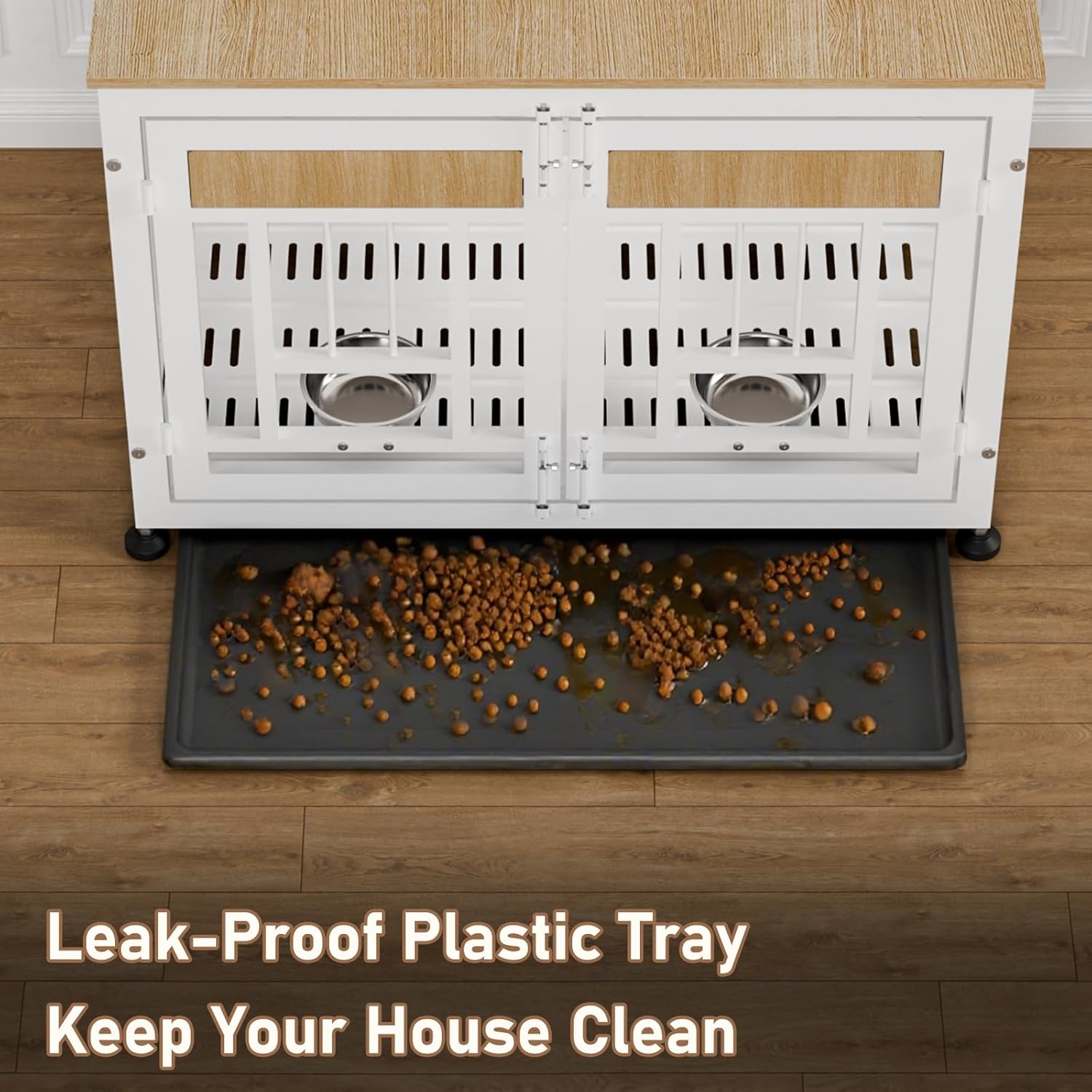 - Easy-Clean Removable Tray: Our Dog crate includes a slide-out plastic tray for quick cleanup of pet hair, spills, or accidents. Simply pull, wash, and replace.
