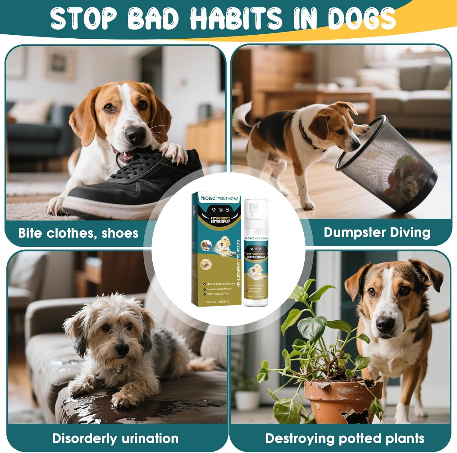 - 【Anti Chew Spray for Dogs】Carefully formulated by animal behaviorists, our double-strength, natural spray is a safe and humane way to stop your dog's chewing and licking behaviors without worry, stress, or discomfort. It helps pets naturally avoid unwanted behaviors while supporting their emotional well-being, making it the best choice to guide your companion into lasting, positive habits