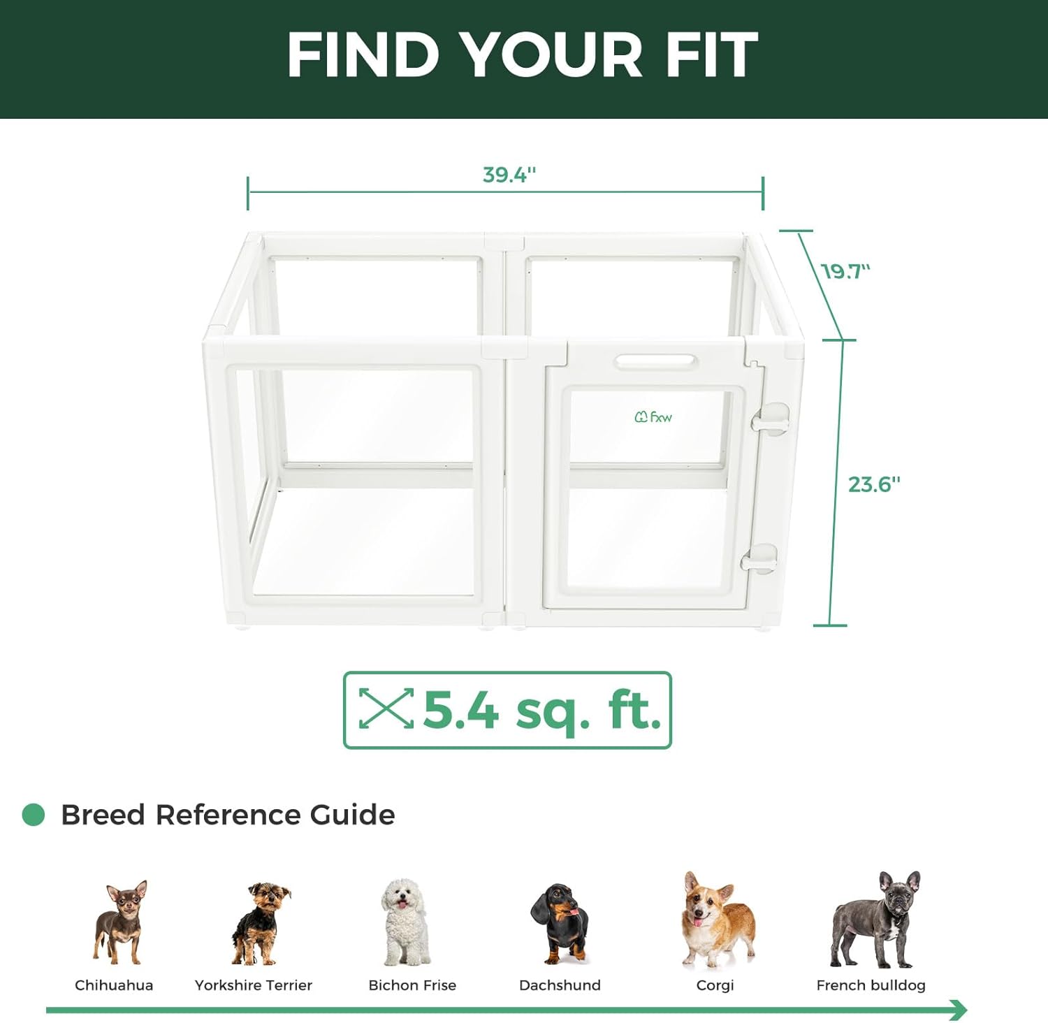 FXW AuraSpace Acrylic Indoor Unleashed Dog Playpen for Puppies and Small Dogs, 24 Inch, 6 Panels, White