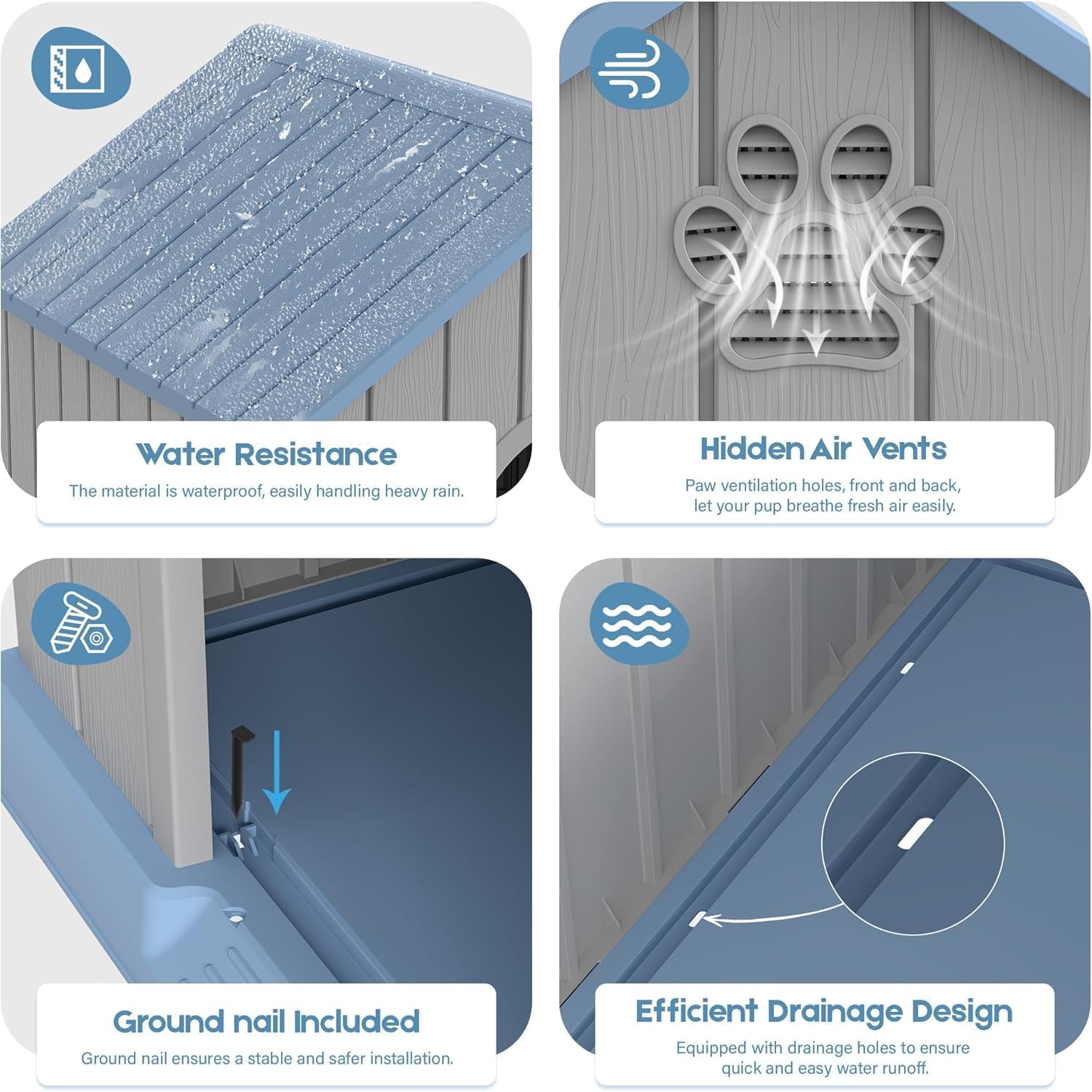 Large Outdoor Plastic Dog House - Indoor Outdoor Use for Medium & Large Dogs, Durable Waterproof Doghouse with Air Vents, Elevated Floor, Easy to Clean & Assemble(Blue2, 36.2''L×38''W×38''H)