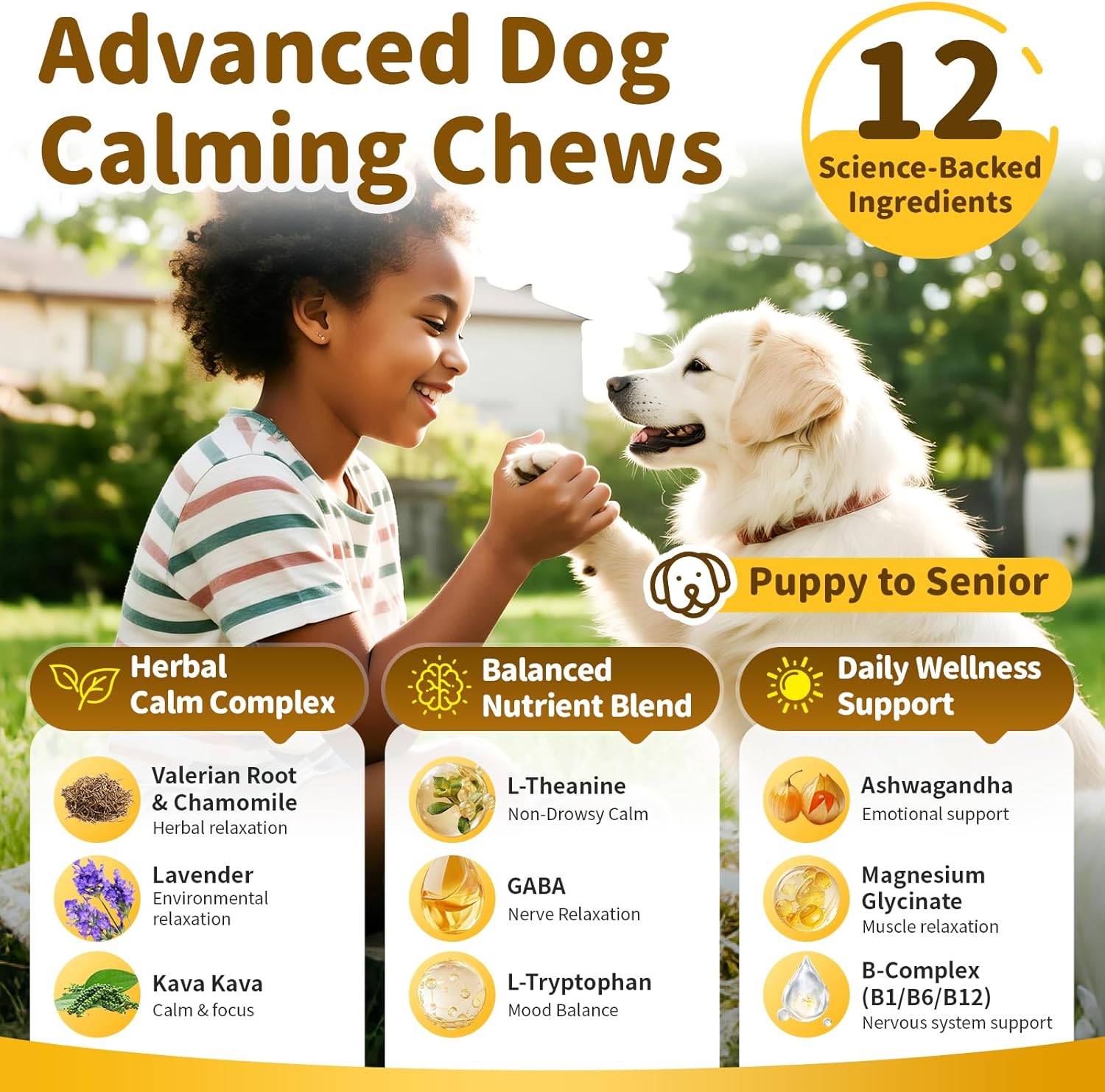 - Safe Daily Calming Support for Dogs & Puppies: Each chew is precisely dosed for small, medium, and large breeds from 12 weeks old. For best results, use consistently as part of your dog’s wellness routine, supporting relaxation, calm focus, and normal energy levels.